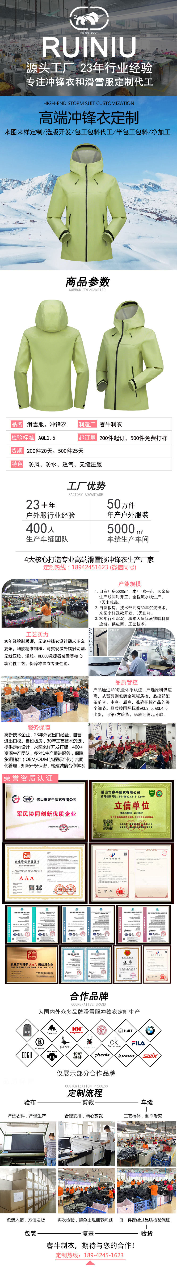 包工包料定制代工压胶冲锋衣