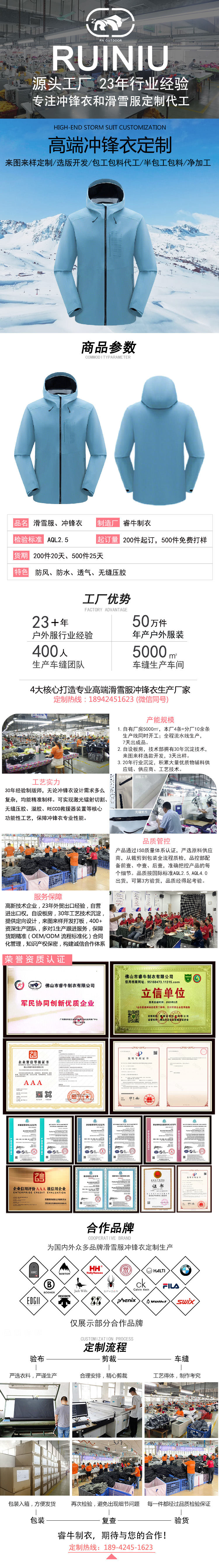 冲锋衣加工厂包工包料定制硬壳冲锋衣